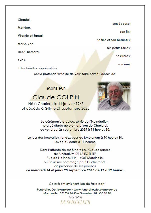 C’est avec une profonde tristesse que nous avons appris le décès de Claude Colpin (ancien secrétaire du club).